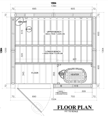 Click here for full floor plan and here for manual for SAWO Scandia 4.5kw Sauna stove included here