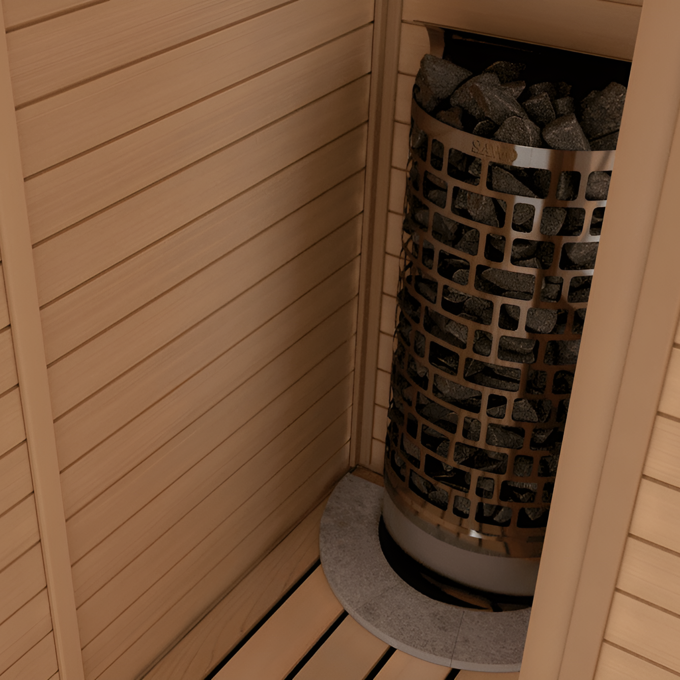 Tower heater is best described as a “sauna stone pillar”. The design is developed to produce steam from the lowest to the highest part of the sauna room. You will enjoy a full-body distribution of steam with Tower heaters. We recommend using heater guard rails for additional safety.