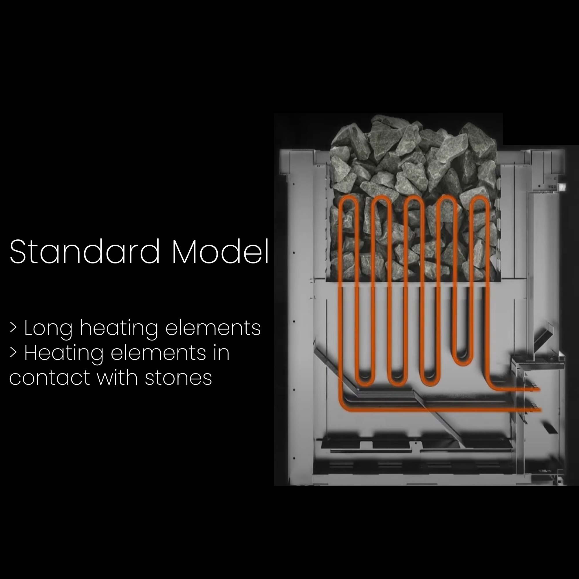 Taurus heating elements and stones are separated with a rock container. This increases the life span of the heating elements. Taurus is equipped with advanced sensors which detect heating element malfunction at an early stage. The stainless steel construction ensures durability in high-humidity, high-temperature environments. Floor-standing design offers flexible placement.