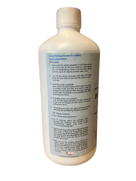 SAWO decalcifying solution has just the right formula to dilute the calcium deposits that causes clogs in the steam tubes that can damage your steam generators. It is a ready-mixed compound that has the correct amount of chemicals that won’t harm the metals of the steam generator tank.