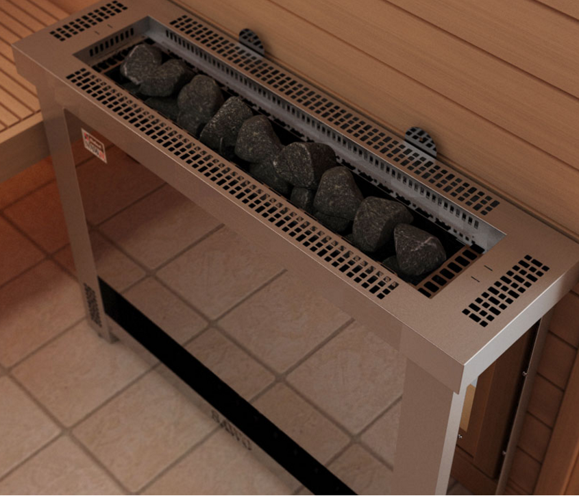 Genius ventilation airflow design of Helius heats the sauna room fast and accidental contact with the heater is avoidable as it can be placed in a remote place in your sauna.