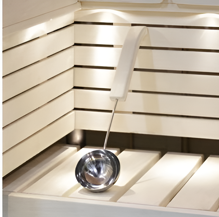 Don’t forget your fragrance and carefully throw on water on your sauna stones for ´löyly´. The Finnish name for the evaporating hot steam that rises from ´kiuas´ heater.
