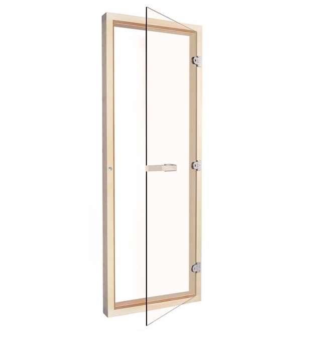 SAUNA DOOR NORDIC SPRUCE 4 SIDED FRAME CLEAR GLASS LEFT or RIGHT OPENING with HORIZONTAL HANDLE