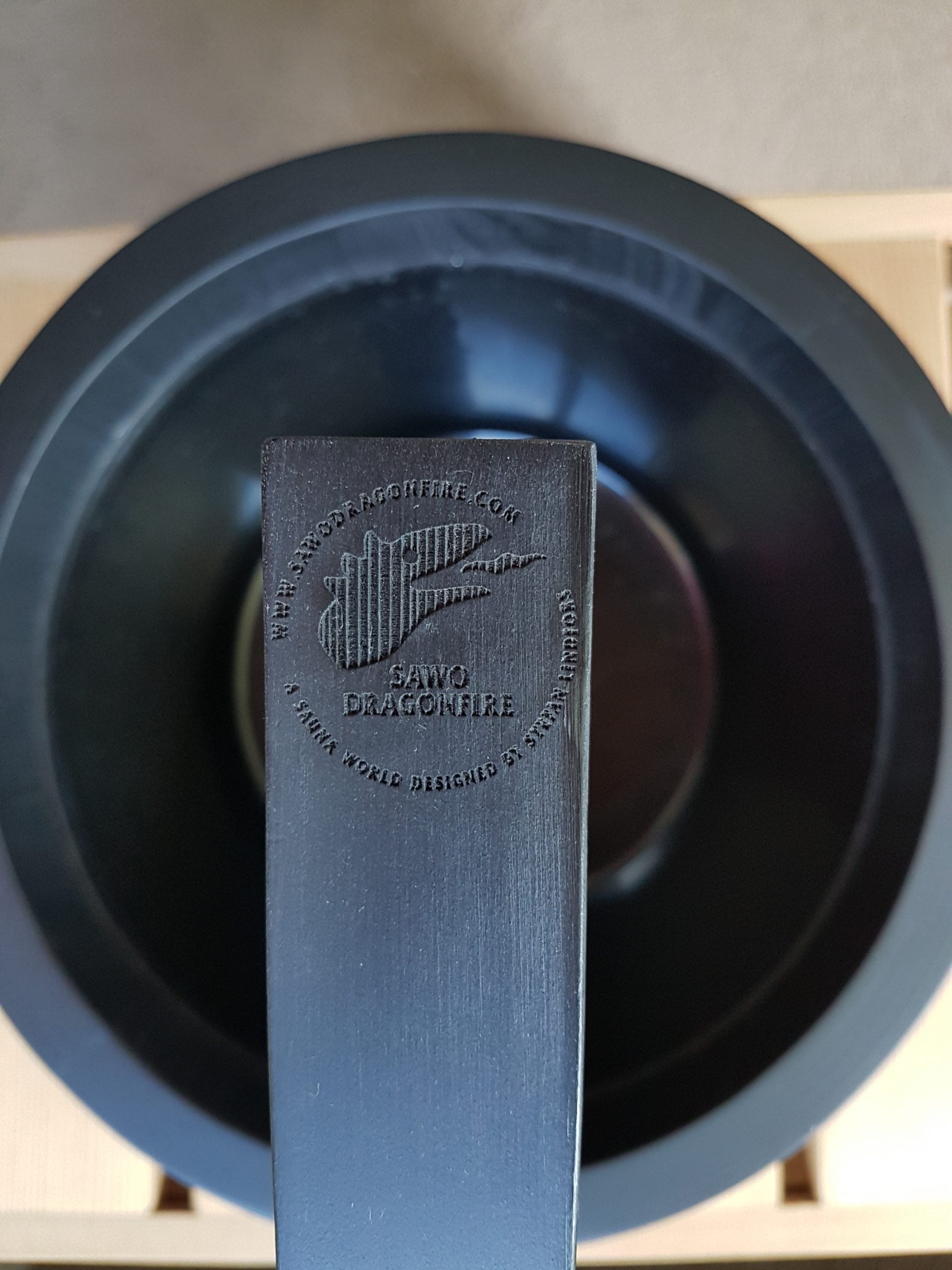 We wanted to improve this ancient object at least a little bit. This one looks great, but is also easy to grab and easy to carry in the heat of a sauna… And it’s got our “dragonfire” pattern engraved all over the cedar tree surface by state-of-the-art laser technology.