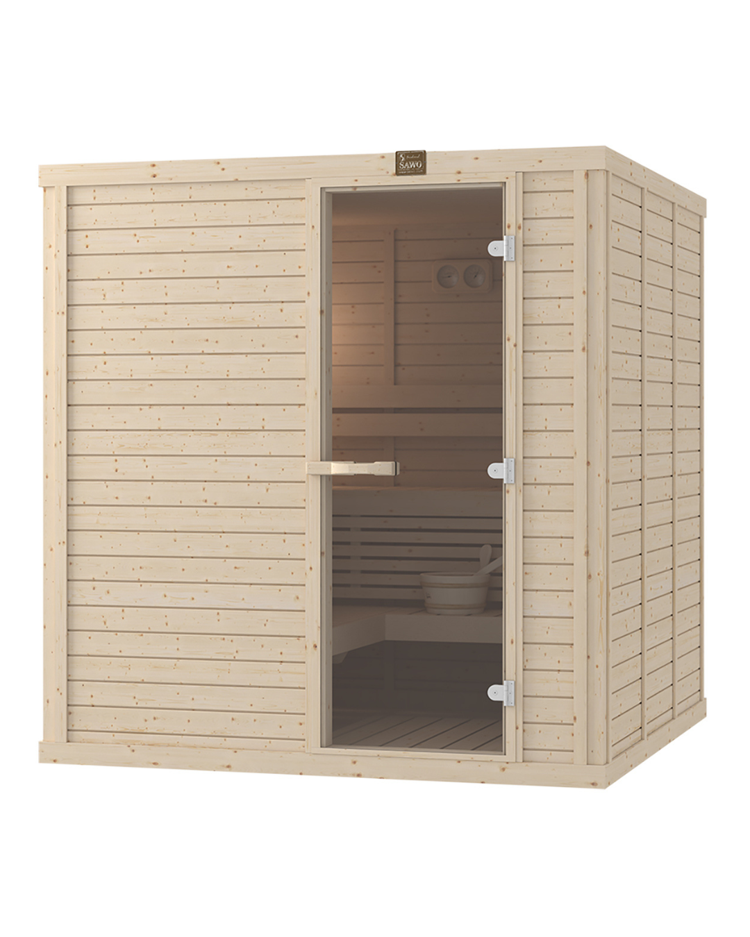 SAWO timber goes further: it’s kiln-dried, resin-free, sustainably sourced from slow-grown Nordic forests, and specifically rated for sauna use.